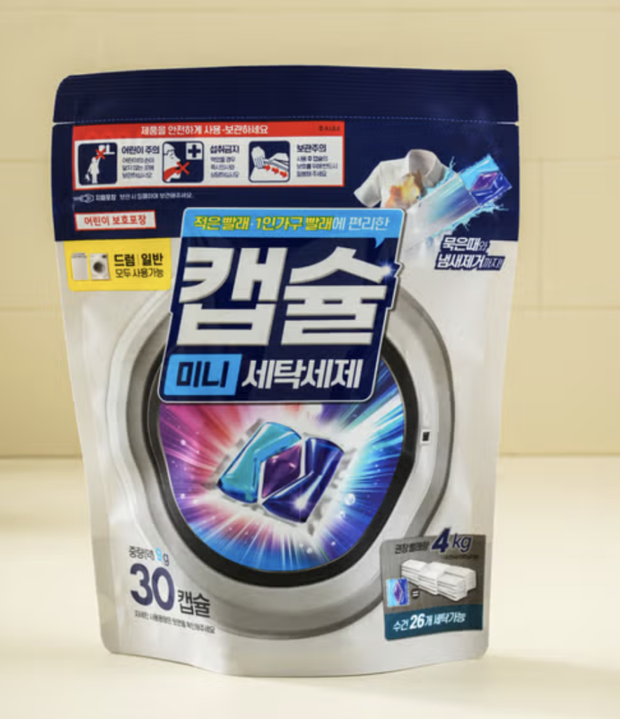 세탁, 세정, 향기까지 한 번에 해결하는 3-in-1 캡슐 세제입니다. 무거운 세제 통 들 필요 없이 한 알 툭 던져 넣으면 끝이라 정말 간편해요.